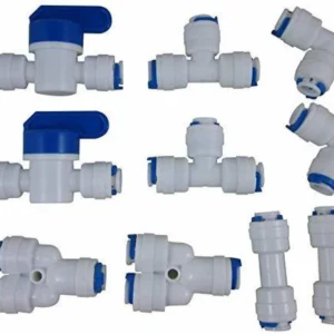 RO Accessories Pipe Jointer Elbow Connector for Water Purifier (2 Nox. Ball Valve + Y Connector + Double Push Elbow + I Straight Connector + T Shape Connector), 1/4″ Size (6mm) White Hose Connector